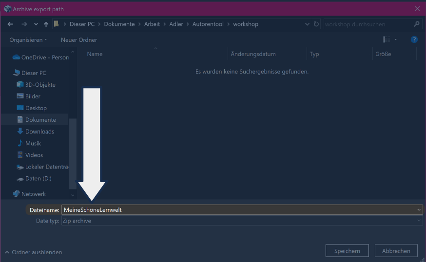 Eine erstellte Lernwelt archivieren und lokal zur späteren Weiterverwendung abspeichern.